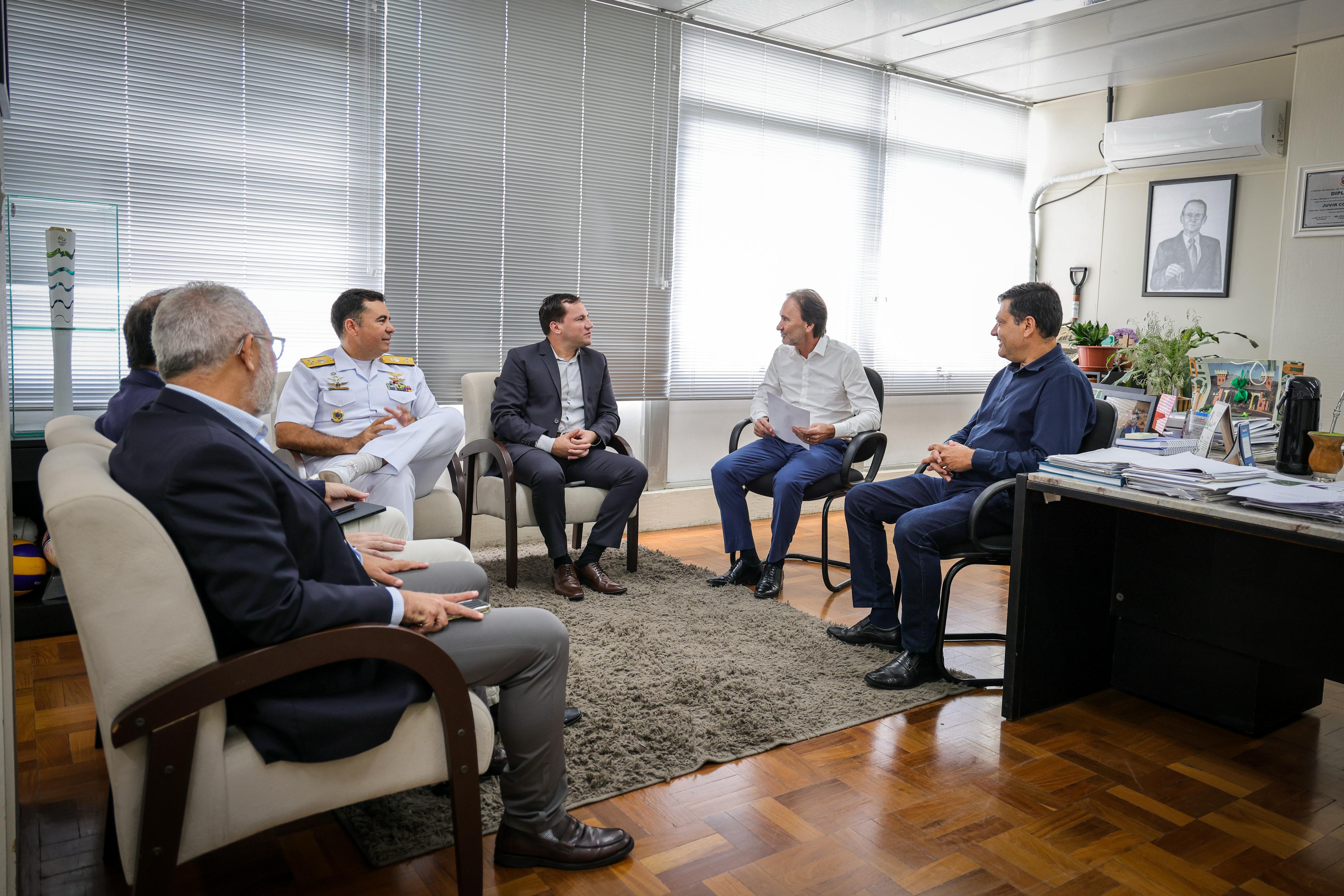O diretor de relações institucionais da Portos RS, Sandro Oliveira, acompanhou o comandante do 5º Distrito Naval, vice-almirante Augusto José da Silva Fonseca Júnior, em uma reunião com o secretário estadual de Logística e Transportes, Juvir Costella, nesta terça-feira (18), em Porto Alegre. Na pauta estiveram assuntos que refletem a atuação da Marinha do Brasil no estado.