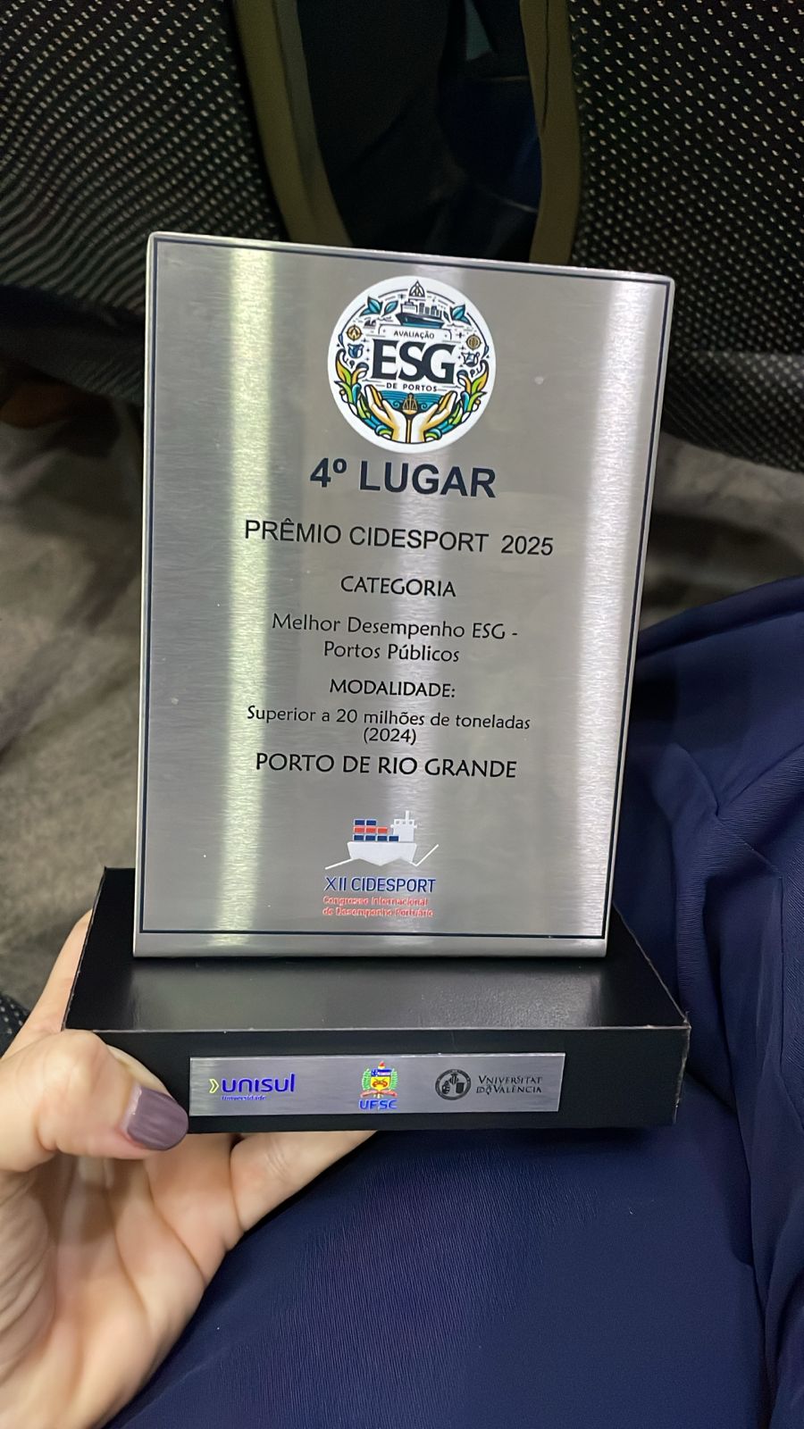 A Portos RS foi reconhecida no cenário nacional por sua atuação em sustentabilidade e boas práticas de governança. O Porto do Rio Grande conquistou o 4º lugar no Prêmio Melhor Desempenho ESG ¿ categoria portos públicos com movimentação superior a 20 milhões de toneladas ¿ durante a edição de 2024 do XII Congresso Internacional de Desenvolvimento Portuário (CIDESPORT), realizado entre os dias 12 e 14 de novembro, em Florianópolis (SC).