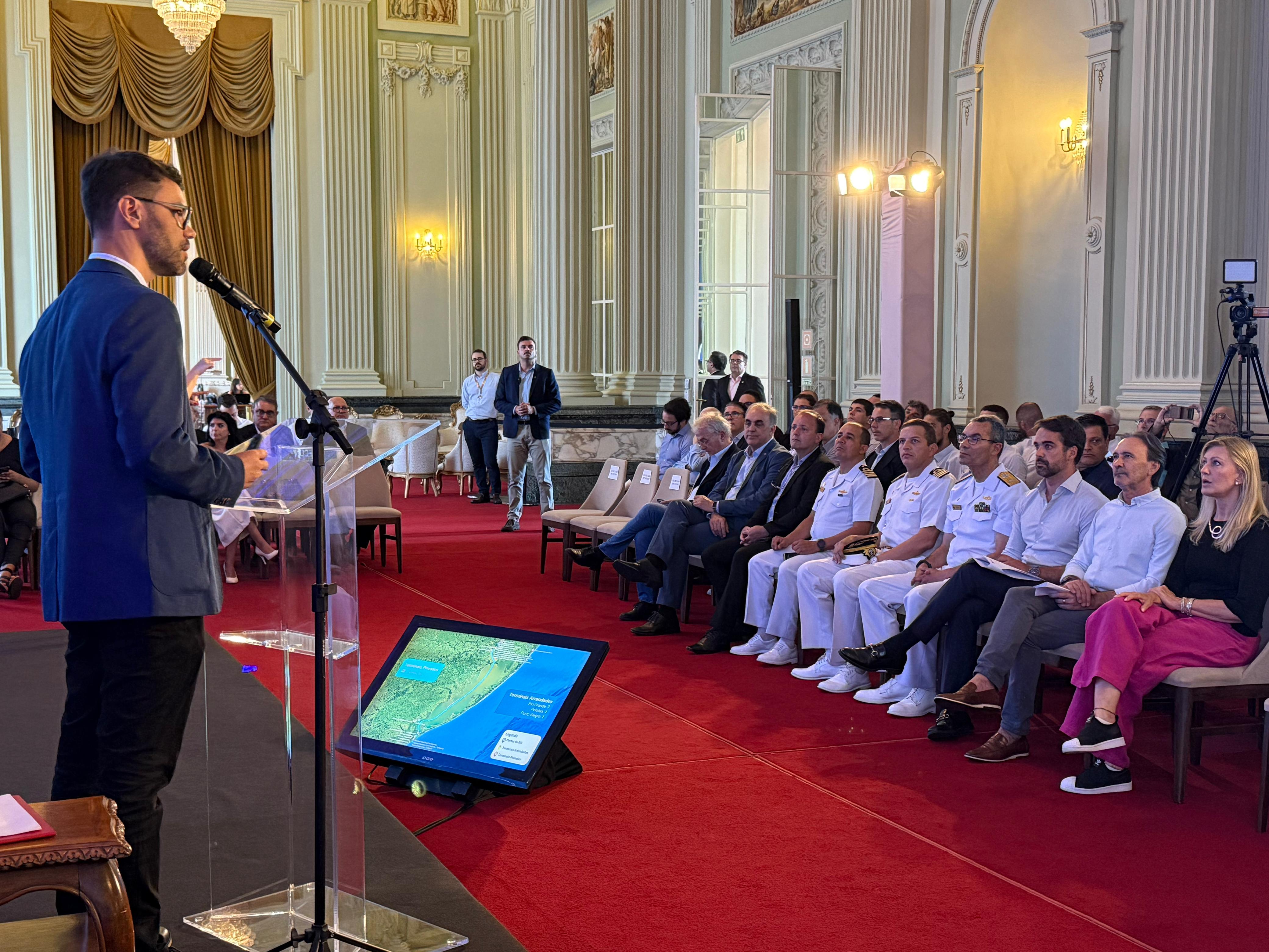 O governador Eduardo Leite, a Marinha do Brasil e a Portos RS, Autoridade Portuária dos Portos do Estado, anunciaram oficialmente, nesta quinta-feira (15/1), a retomada da navegação de longo curso ao Porto de Porto Alegre e a retirada da restrição à navegação noturna na hidrovia do Rio Grande do Sul. O anúncio ocorreu no Palácio Piratini, em Porto Alegre.