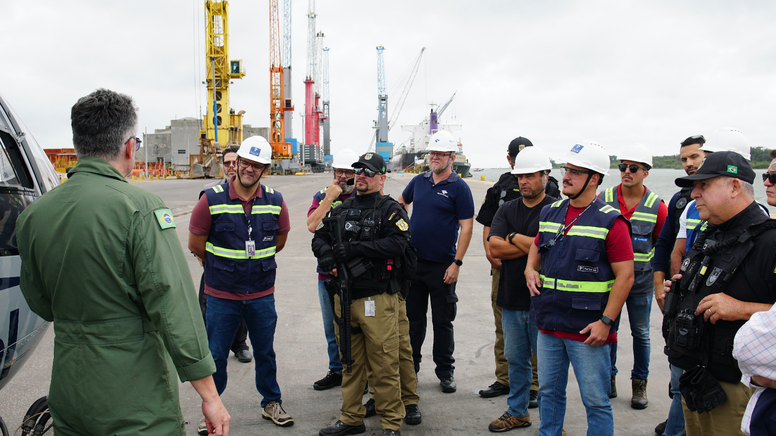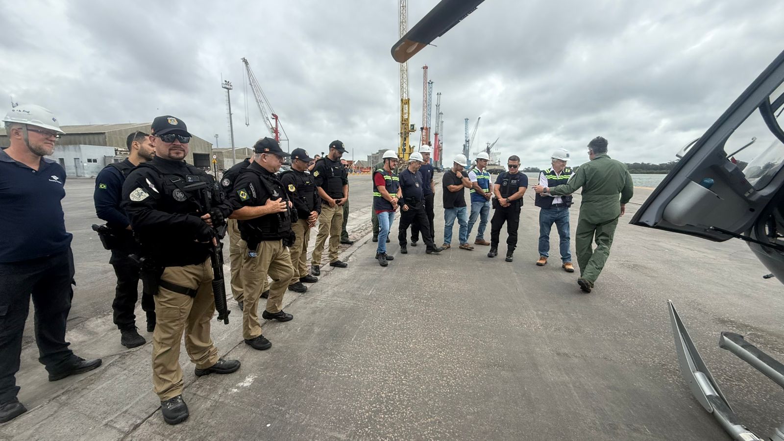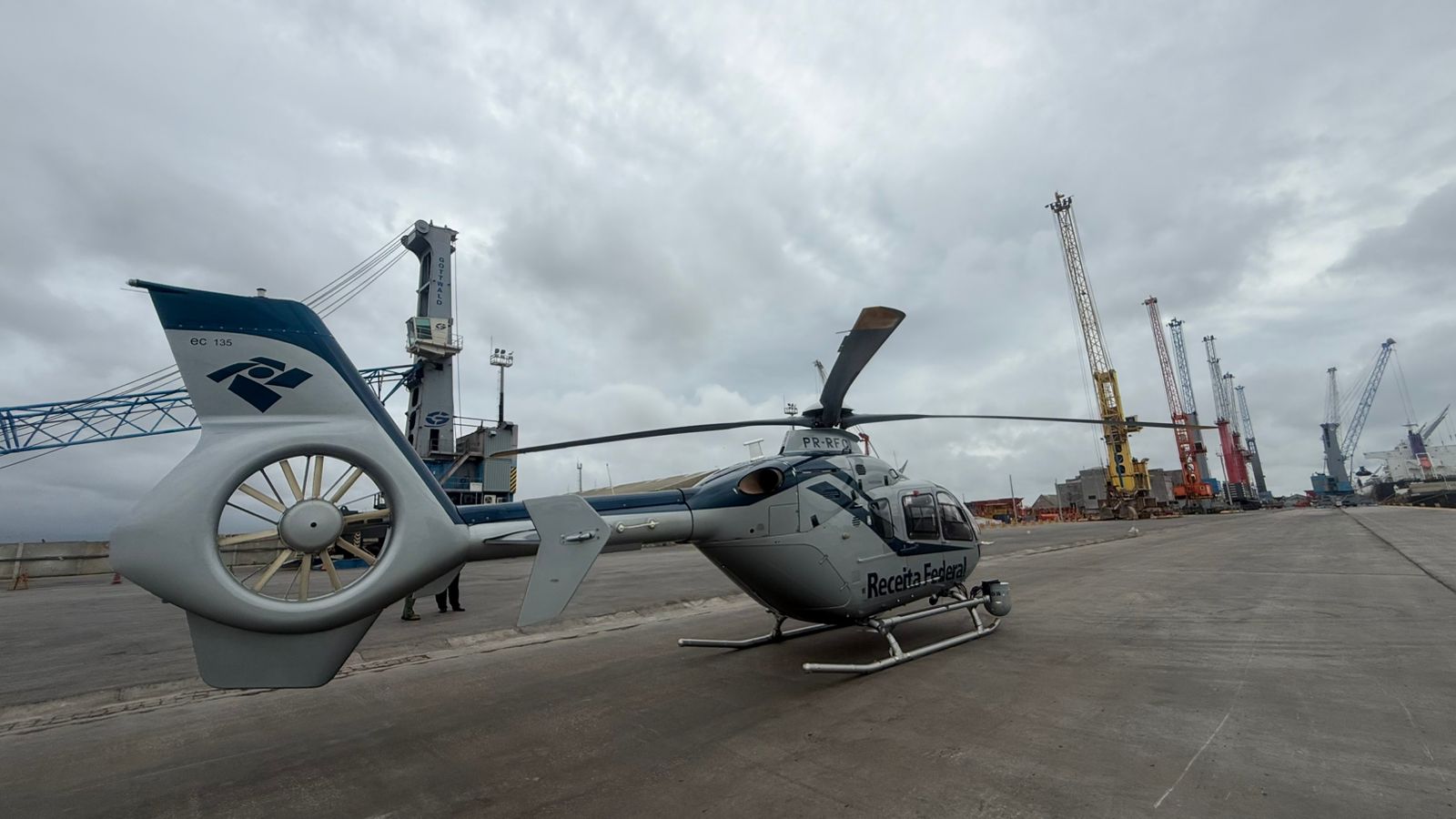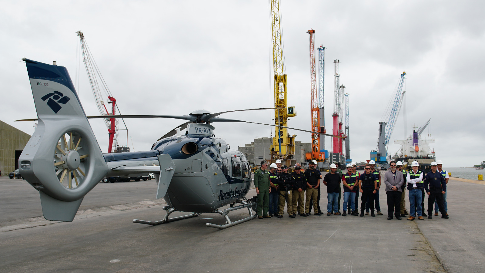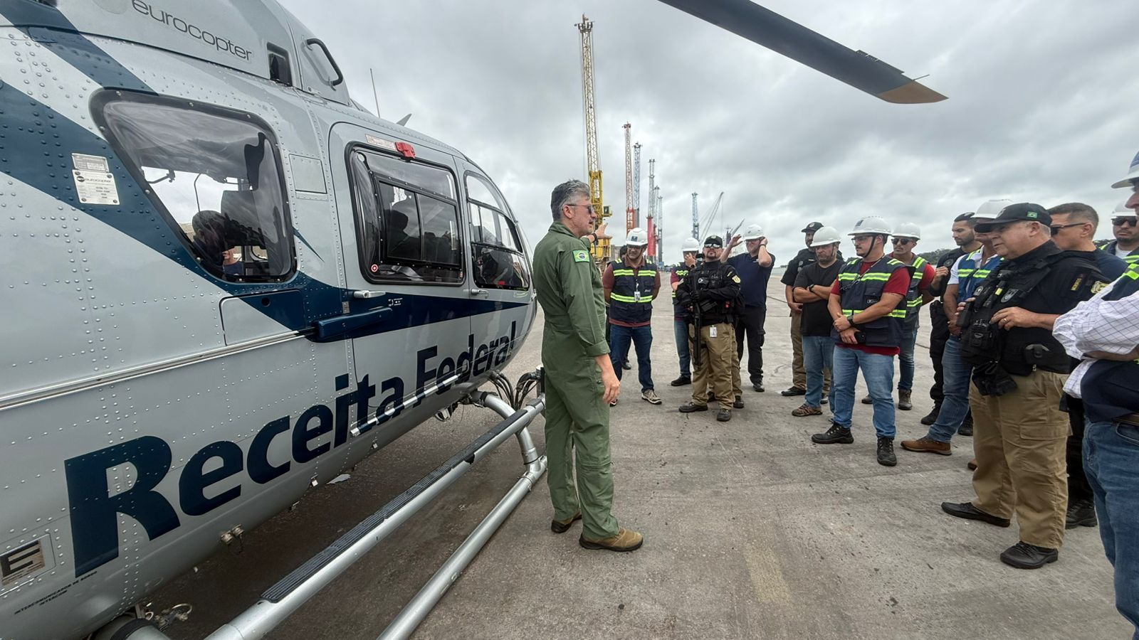 A operação utilizou o helicóptero PR-RFC com o objetivo de demonstrar a capacidade de mobilidade e ampliar a presença fiscal da aduana brasileira diretamente nos recintos portuários, considerados estratégicos para o comércio exterior.